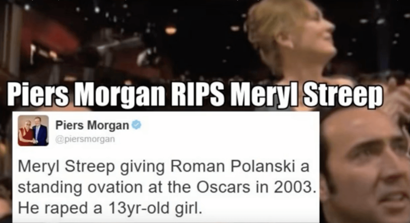 Which is true. Except that in 2003 when Roman Polanski won an Academy Award for best director for The Pianist, Streep was among those who led a standing ovation for the director.