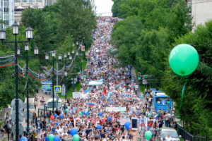 The demonstrations began on 11 July, two days after the governor’s arrest and summary transfer to a Moscow prison on charges of contract killings that date back more than 15 years. Initially, the protesters were simply demanding that he be freed or allowed to stand trial in Khabarovsk. Ten days later the protests gained new momentum, after Putin appointed a new interim governor, an MP from the Volga region, with no ties at all to the Far East.