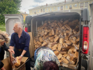Bakhmut’s civilian police have reportedly already withdrawn from the city, apart from the detachments manning checkpoints on the outskirts, and the distribution of aid is difficult as government infrastructure crumbles under the pressure. Outside a local government building, civilian volunteers unloaded a white van piled high with loaves of bread sent from a bakery in Dnipro, four and a half hours’ drive away, to be delivered in the city and in nearby villages wracked by fighting. At a playground nearby, a pair of middle-aged women sat on a bench watching their young children scramble over the slides, whooping with joy in the early summer sun. “We are from Soledar,” a frontline town 15 km north on the road to Severodonetsk, Olena, a pharmacy worker, told me. “Everything is destroyed there, by tanks, by Grad rockets, everything.”
