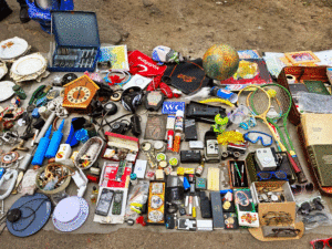 “50 hryvnia! Do you want my husband to beat me to death?” The trader on the stall is filled with faux indignation as I watch her and Vlad argue over a small 1980 Moscow Olympics badge. We are at the flea market in old Moldovanka, which was once the Jewish quarter. You can get almost anything here: second-hand shoes, skirts, harpoons, typewriters, squash rackets, dolls in varying states of collapse, and a disconcertingly high number of knives and other weapons.
