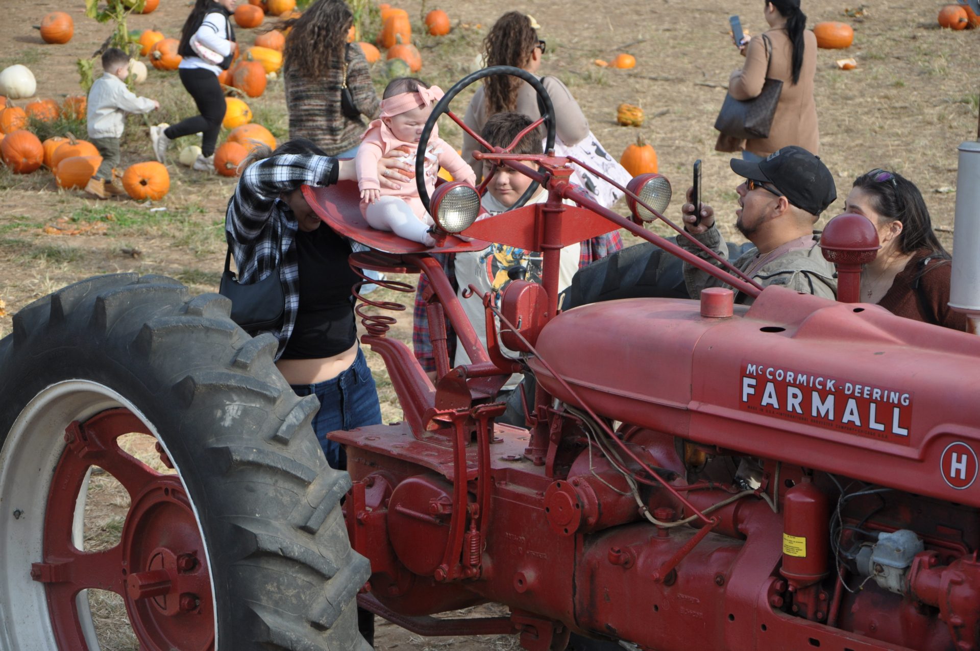 Inside the gates, the farm unfolds like a pop-up storybook. A boy pets a goat through a fence as the animal tugs insistently at his sleeve. A father and son shoot basketballs through peach hoops. A little girl wearing braids stands at her mother’s side, clutching her tiny green pumpkin by the stem. The place is alive, radiating with the shouts and giggles of children. “We were sold out both days this weekend,” Lisa says. “We worked all year long for that.”