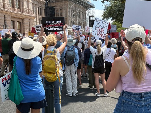 With their foreordained surrender looming, on Saturday “Fight the Trump Takeover” rallies were held in 34 states to protest Republican gerrymandering. The main protest took place in front of the Austin Capitol, yet it was clear when I arrived that, for all the media coverage, few people were willing to sacrifice a Saturday morning to oppose the return of authoritarianism to America.