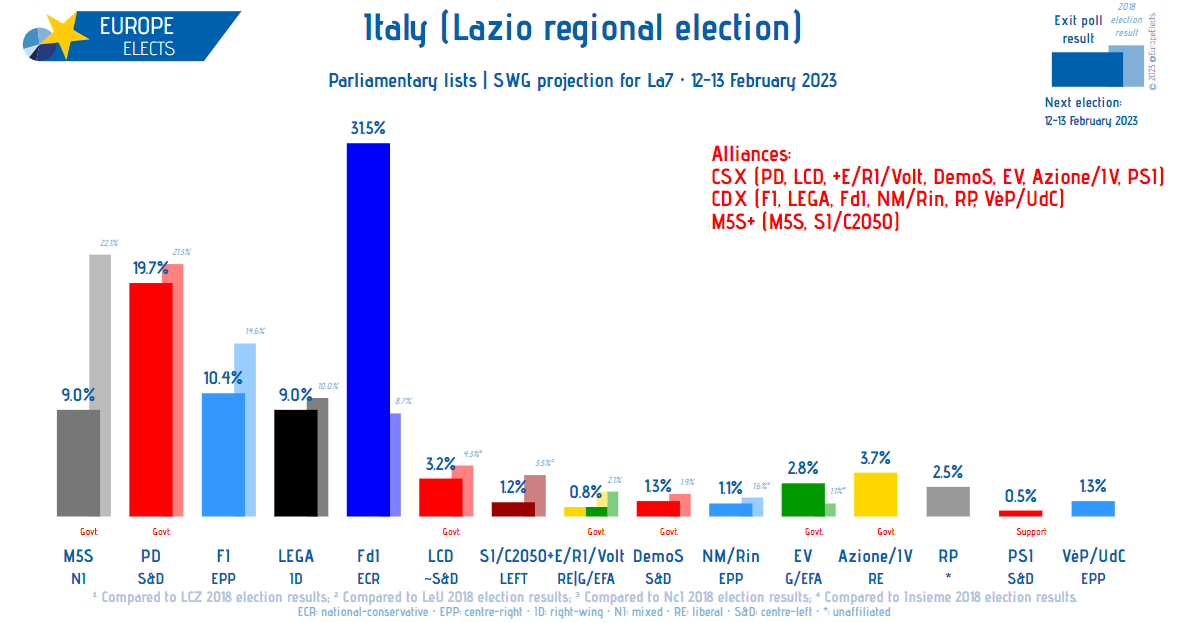 Meanwhile in Italy, the Right continues to make advances across the country. Exit polls in the nation’s two most populous regions indicate that the Right-wing Lega Party’s regional president is expected to be re-elected in Lombardy. Thanks in large part to the success of Meloni’s Fratelli d’Italia, the Right-wing coalition has strengthened its foothold here and expanded its reach further south. If the polls are correct, Lazio looks set to have its first Right-wing government in 10 years, with the insurgent centre-Right candidate smashing his nearest opponent by 20 percentage points. Overall, projections show that Fratelli d’Italia will have its best result ever in an Italian regional election.