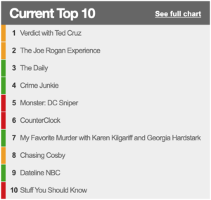 Second, the most popular podcast of the moment, surpassing all the American top ten, is Ted Cruz’s daily pro-Trump coverage of the trial.