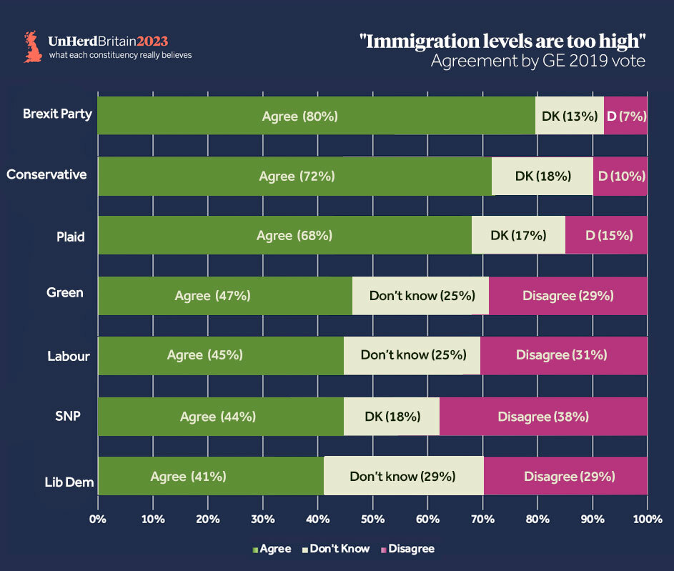 Of all the issues we have investigated for UnHerd Britain 2023, immigration is the topic that unites the country in the strongest agreement. Taking back control of immigration was a key driver behind the Brexit vote. Nearly seven years on, voters evidently believe that successive Conservative governments have failed in this regard.