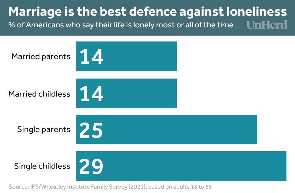 But one important word is missing in the public conversation about loneliness: marriage. In the course of researching my new book, I found not only that the happiest and most financially secure Americans are married but also that the least lonely Americans are married. Meanwhile, marriage tends to matter more than many of the factors that public health leaders such as Murthy focus on.