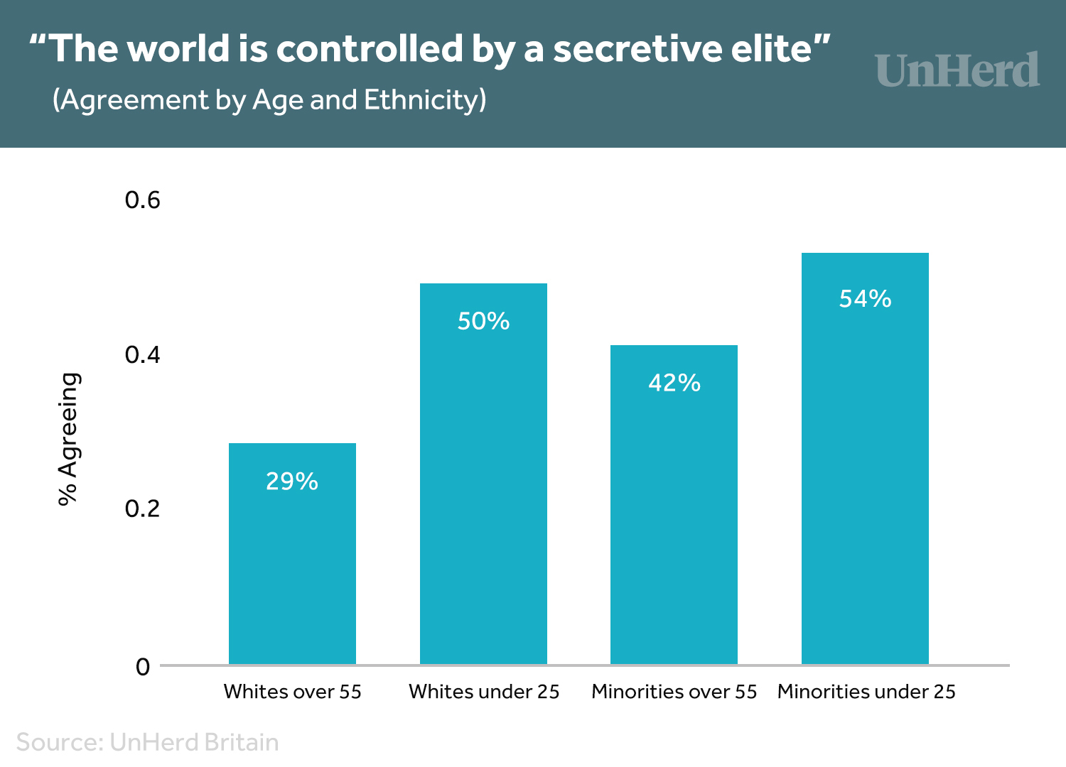 The future British electorate will be less white, and shaped more by Millennials and Gen-Z than today’s elderly Boomers. Since both minorities and young people are more likely to believe in a global conspiracy, this could fundamentally alter the character of British politics.