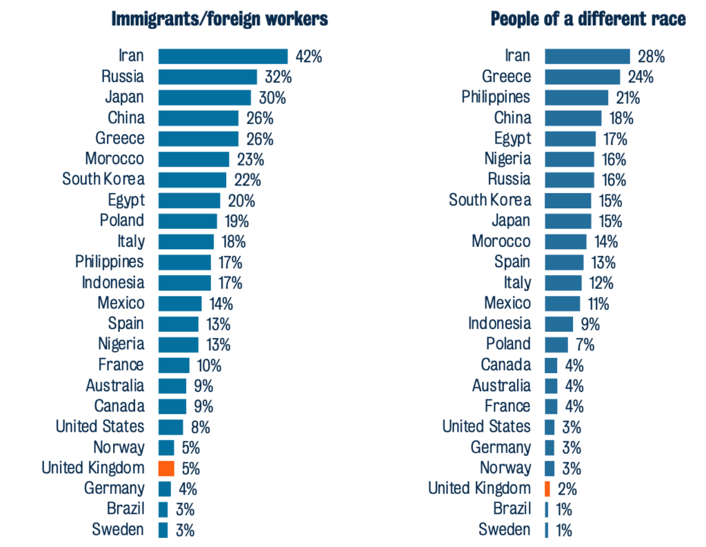 The UK is one of the least racist countries in the world, according to a massive new global study, with just 2% of Britons feeling uncomfortable about the idea of living next door to somebody of a different race. Asking whether someone would be happy living next to someone of a different race is one of the traditional ways that researchers measure racism. The data also shows that the British are amongst the most accepting countries in the world. In addition, the nation is among the highest-ranking for tolerance of gay people and immigrants.